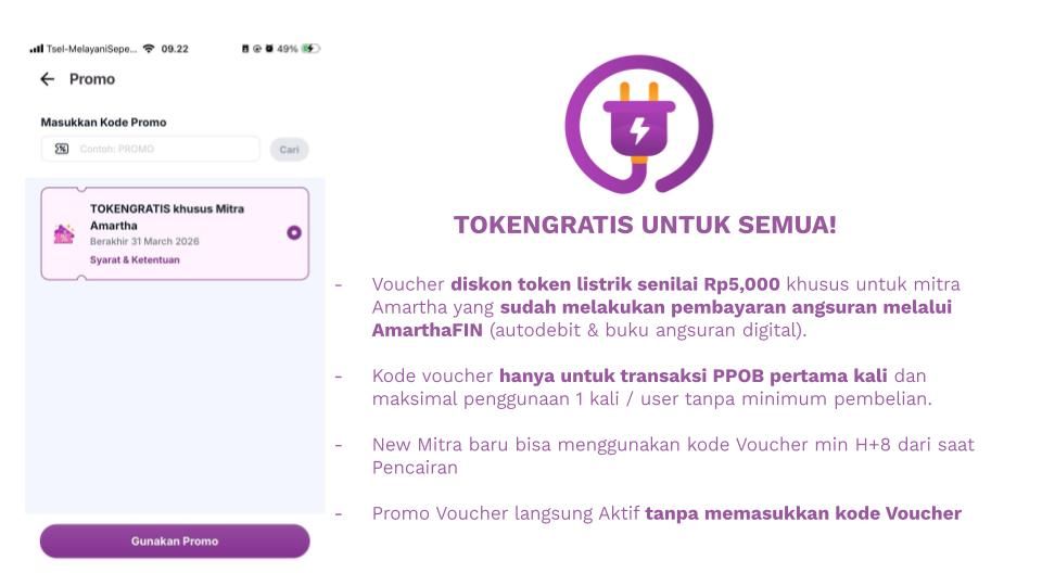 Seluruh promo yang tercantum dapat digunakan sebagai bahan edukasi, aktivasi, serta motivasi Mitra agar lebih rutin bertransaksi menggunakan AmarthaFin.