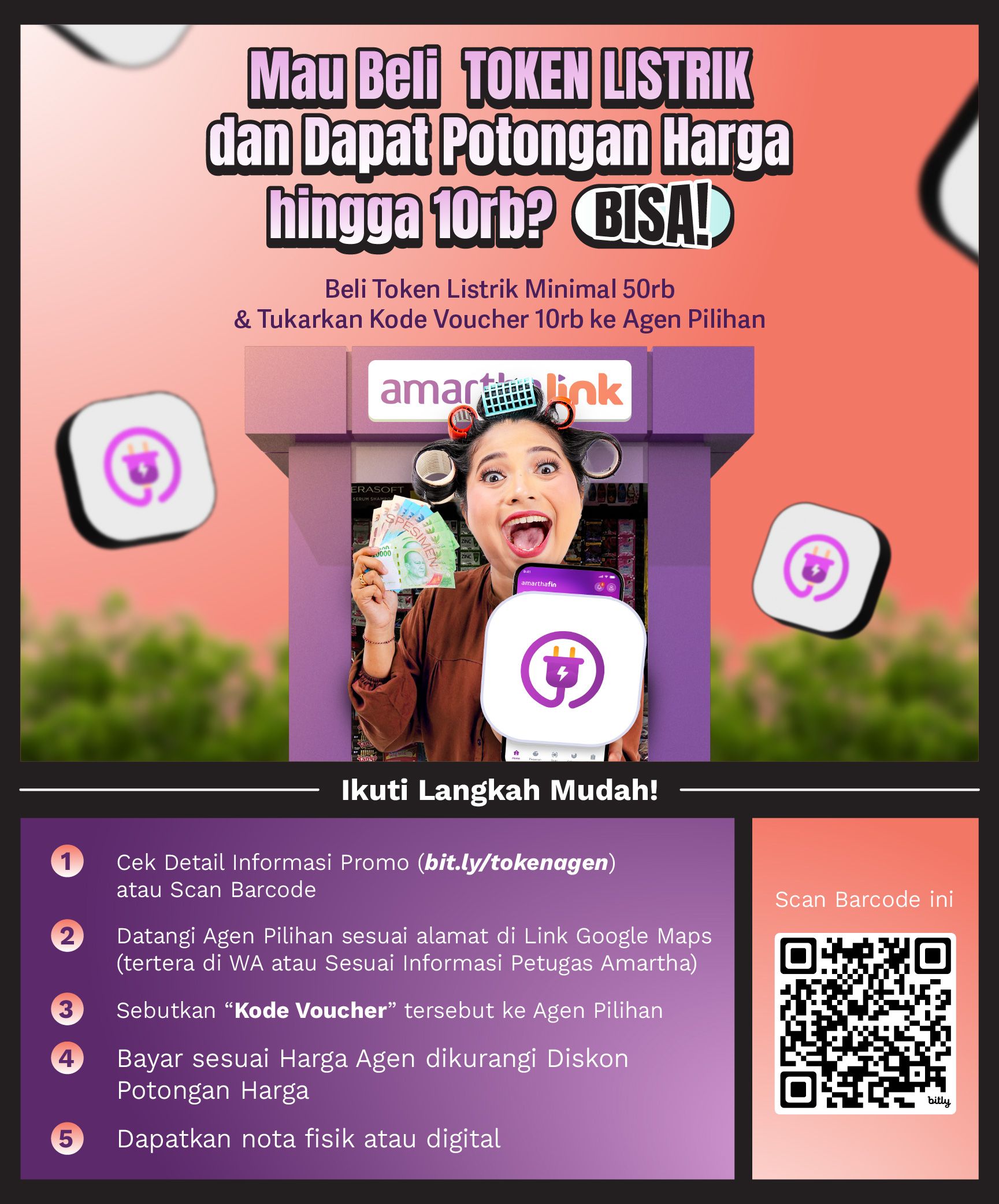 Mau beli token listrik tapi pengen yang cepat, aman, dan pastinya hemat? Tenang, sekarang ada Agen AmarthaLink! Tinggal datang ke agen AmarthaLink yang direkomendasikan Amartha, Ibu sudah bisa transaksi lebih mudah sekaligus nikmatin voucher diskon Rp10.000 khusus pembelian token listrik.