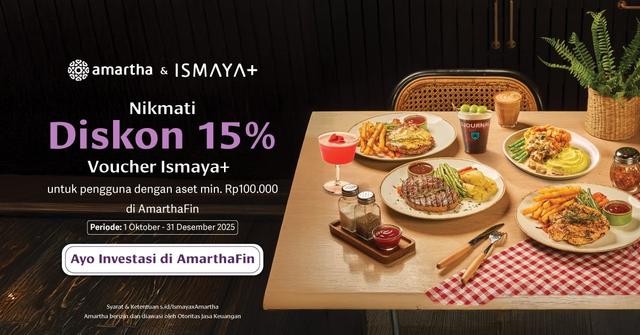 Semua bisa dapat voucher makan dari Ismaya +! Caranya gampang cuma dengan memiliki aset celengan minimal Rp 100.000 di AmarthaFin selama periode berlangsung.