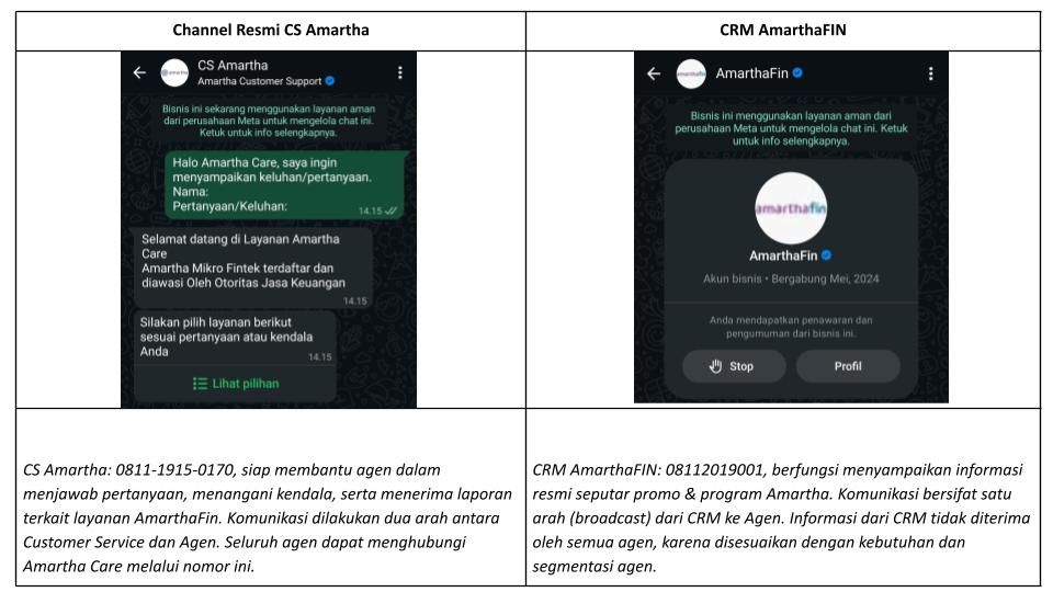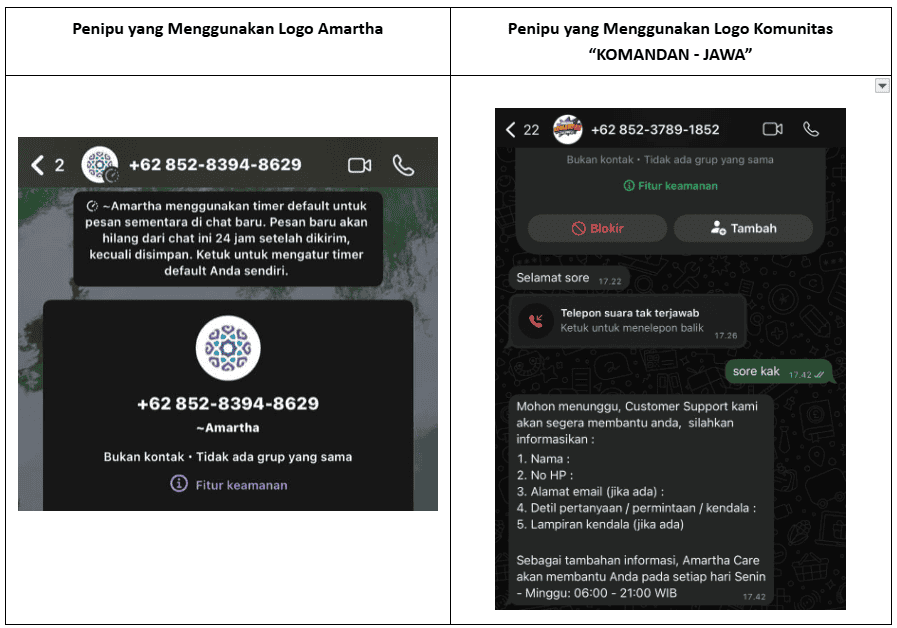 - Menggunakan foto profil Amartha/AmarthaLink/Komunitas KOMANDAN dengan nomor tidak terdaftar resmi.
