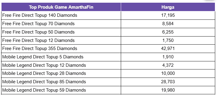 Jadi nggak ada lagi cerita diamond habis pas lagi mabar Mobile Legends atau FreeFire. Yuk cek Top 10 Produk Top Up Game favorit di AmarthaFin.