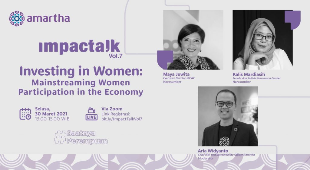 Dalam rangka memperingati International Women’s Month’s, Amartha mengajak masyarakat melihat berbagai peluang dan dampak luar biasa yang dapat diciptakan perempuan dengan melibatkan mereka pada aktivitas perekonomian. Bekerjasama dengan IBCWE dan Penulis dan Aktivis Kesetaraan Gender, Amartha menggelar webinar dengan tema Investing in Women: Mainstreaming Women Participation in the Economy.