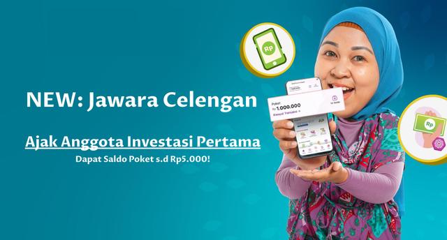 Mau tambahan pemasukan hanya dengan mengajak anggota majelismu melakukan investasi pertama di Celengan. Ajak investasi minimal Rp30.000, Ibu akan mendapatkan reward Poket hingga Rp5.000 untuk setiap mitra yang berhasil melakukan investasi pertama.