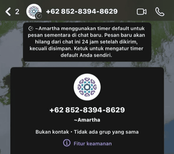 - Menggunakan foto profil Amartha/AmarthaLink/Komunitas KOMANDAN dengan nomor tidak terdaftar resmi.