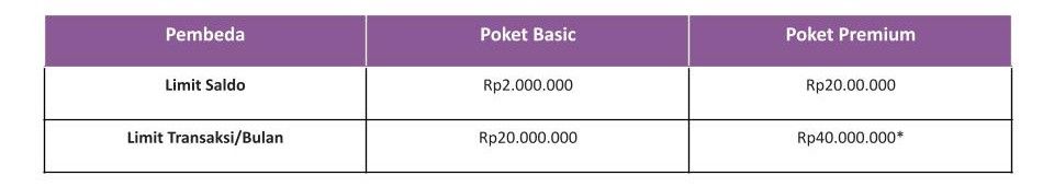 Dengan mengaktifkan Poket Premium, Bapak/Ibu dapat menikmati layanan Transaksi Lancar, Limit Meningkat, Keuntungan Berlipat! Karena terdapat beberapa keuntungan yang tidak terdapat di Poket Basic, & hanya ada di Poket Premium: