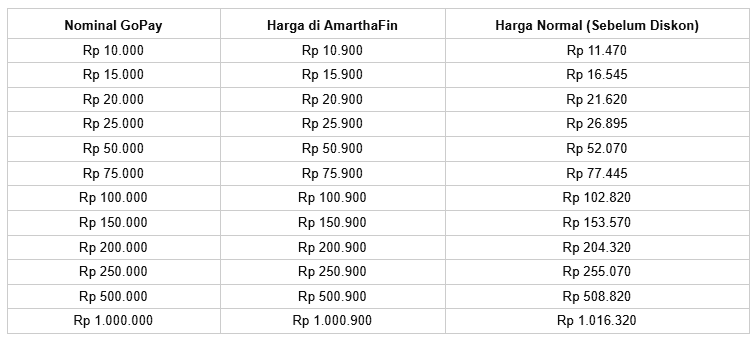 Berikut daftar harga top-up Gopay di aplikasi AmarthaFin 👇