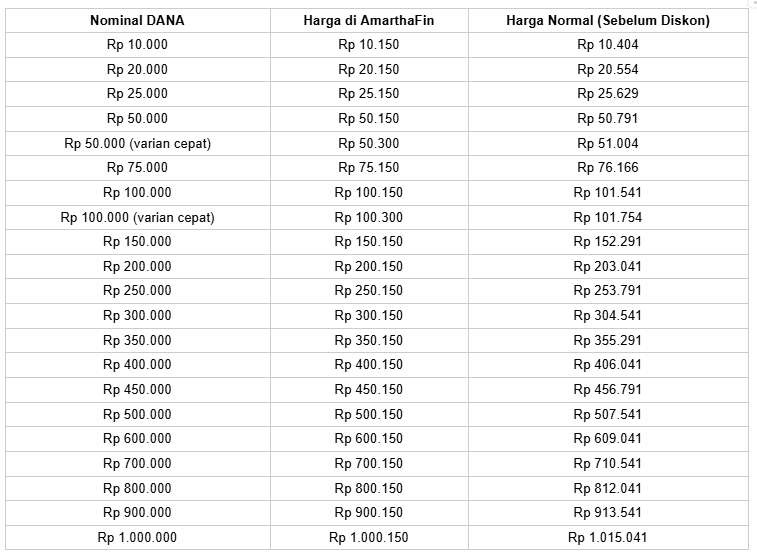 Berikut daftar harga top-up DANA di aplikasi AmarthaFin 👇