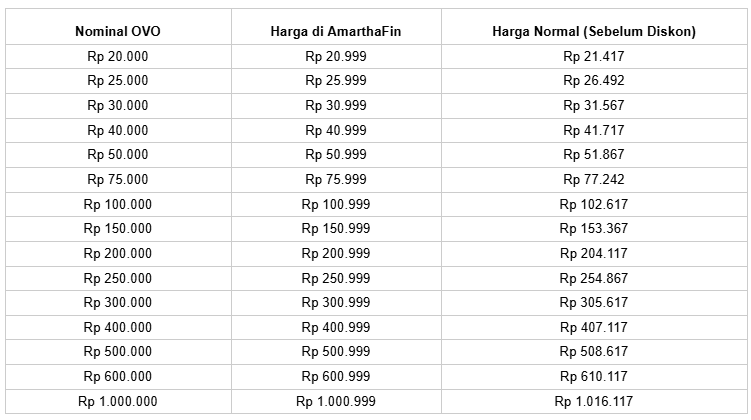 Berikut daftar harga top-up OVO di aplikasi AmarthaFin 👇
