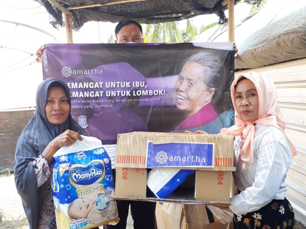 Amartha Serahkan Bantuan untuk Ibu dan Anak Korban Gempa Lombok
